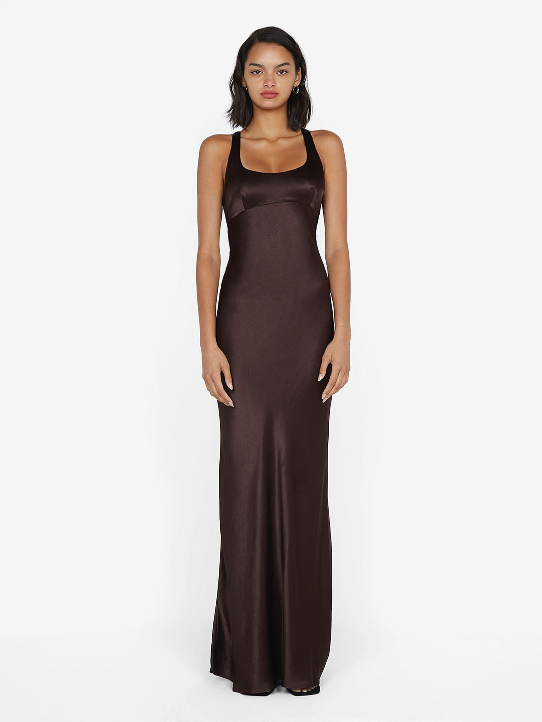 Shoulder straps crossover at the back for an open back detail