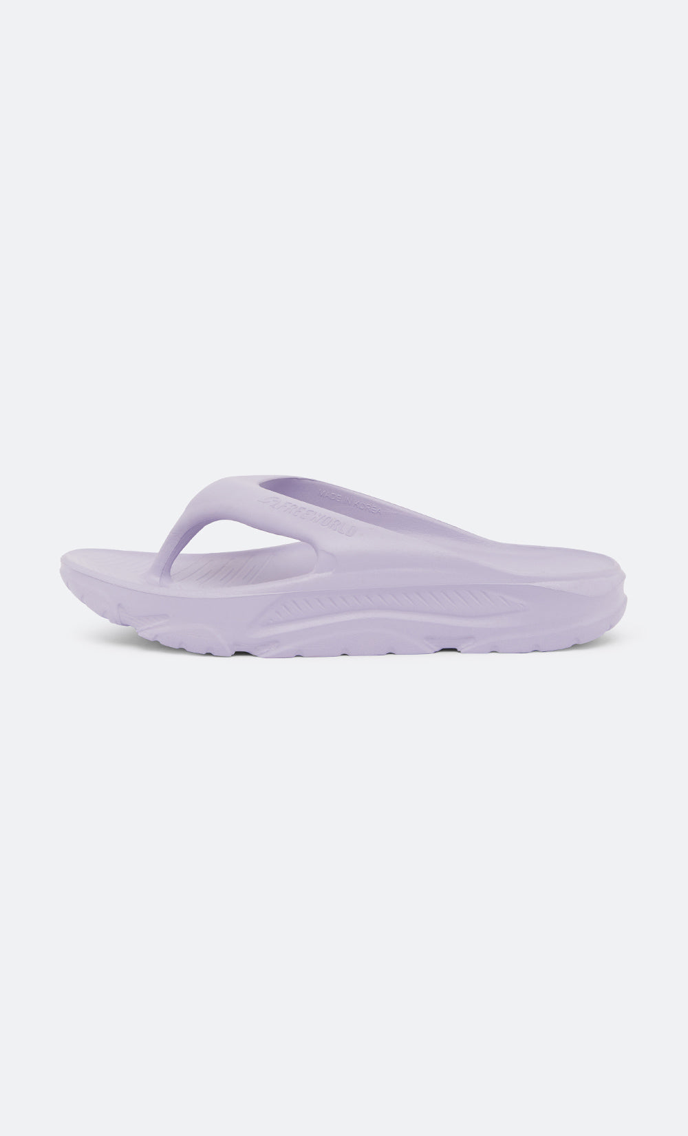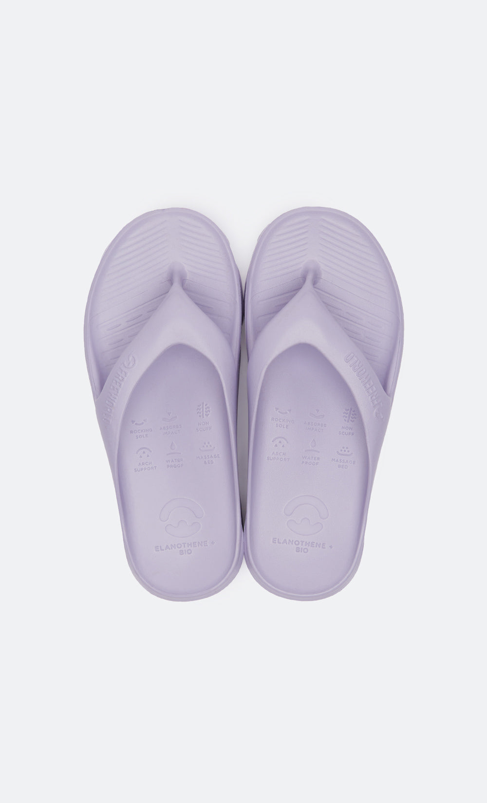 Freeworld Bio Thong in Wisteria. Designed with a soft, wide profile, this pair provides the ultimate stretch and relaxation for all walks of life. The anatomically designed footbed works in tandem with the four-way channel outsole to evenly distribute your weight, giving your feet the ultimate recovery experience.