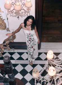 Fitted silhouette flowing into a straight maxi dress