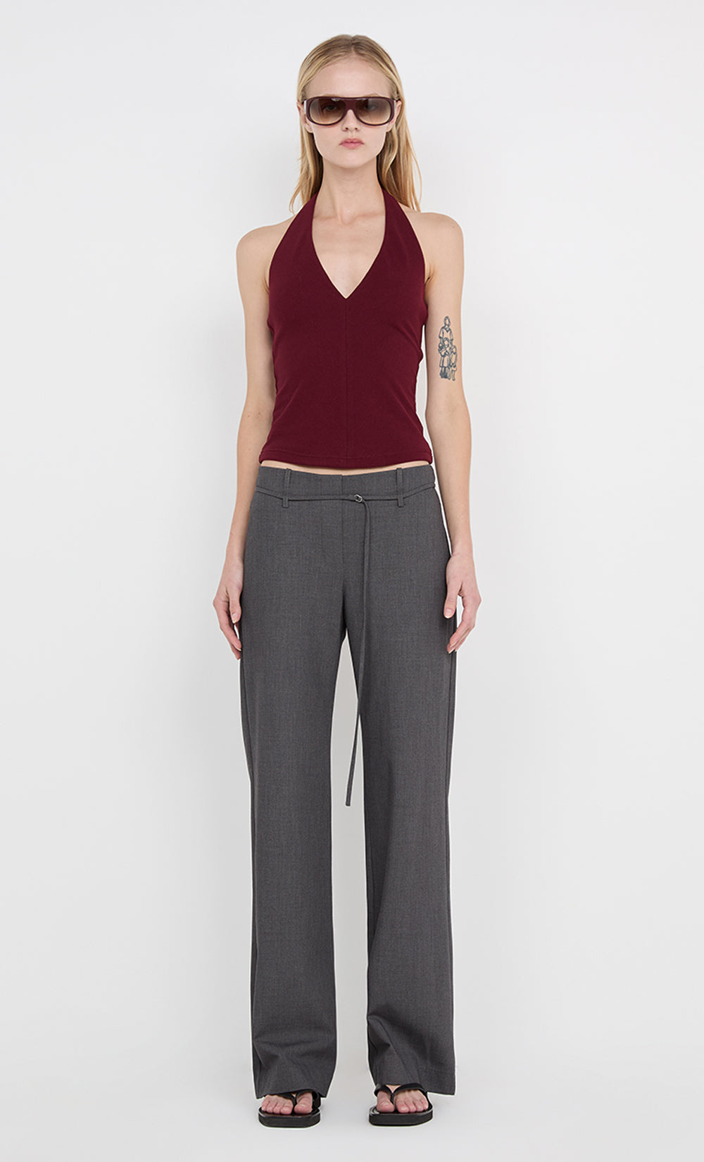 Ione Halter Top in Plum. This chic halter top features a flattering V-neckline, perfect to dress up or down for events or relaxed days.