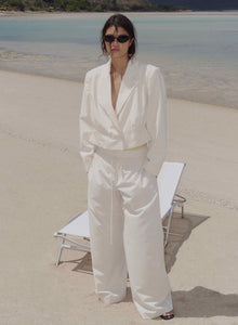 The BEC + BRIDGE Jamie Wide Leg Pant in Charcoal is a sophisticated and timeless piece, crafted from a wool-viscose blend suiting fabric. Designed with a classic single tuck front and a tailored finish, these pants offer a flattering mid-rise waist and a relaxed, wide-leg silhouette for a polished yet comfortable fit. Featuring a fly front detail and back welt pockets, these pants are finished with a blind hem for a seamless, refined look. Perfect for both professional settings and elevated casual wear.