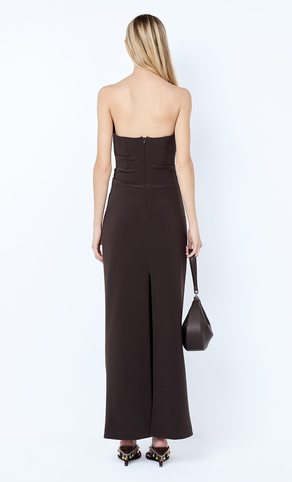 Lior Strapless Dress in Espresso. A sleek strapless dress perfect for evening events, cocktail parties or special occasions.