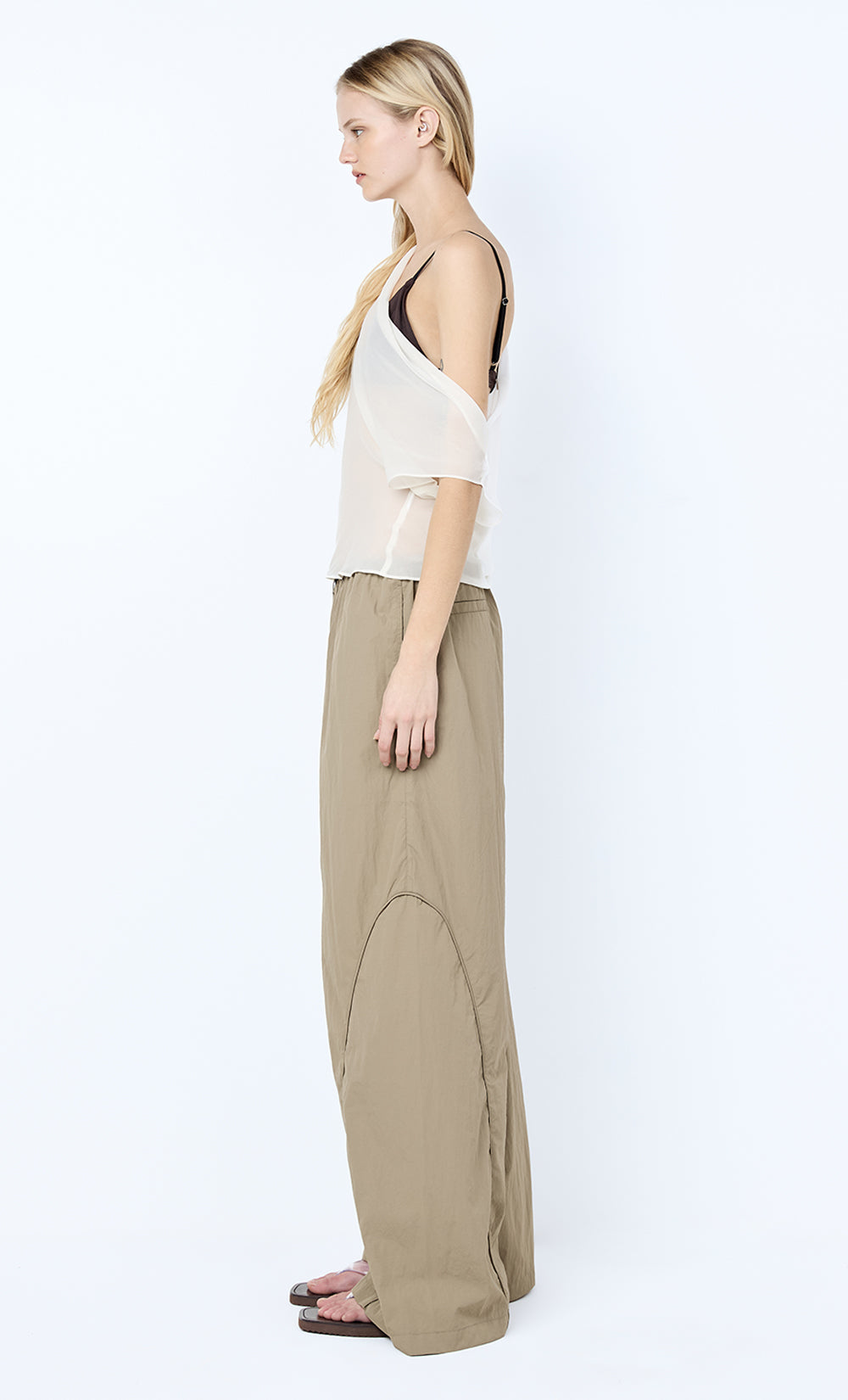 Eloise Layered Cowl Top in Snow. A sheer georgette top perfect for elevated daywear or layering. Style with a bikini or bralette underneath for extra coverage.