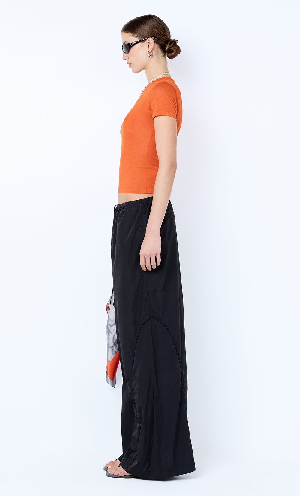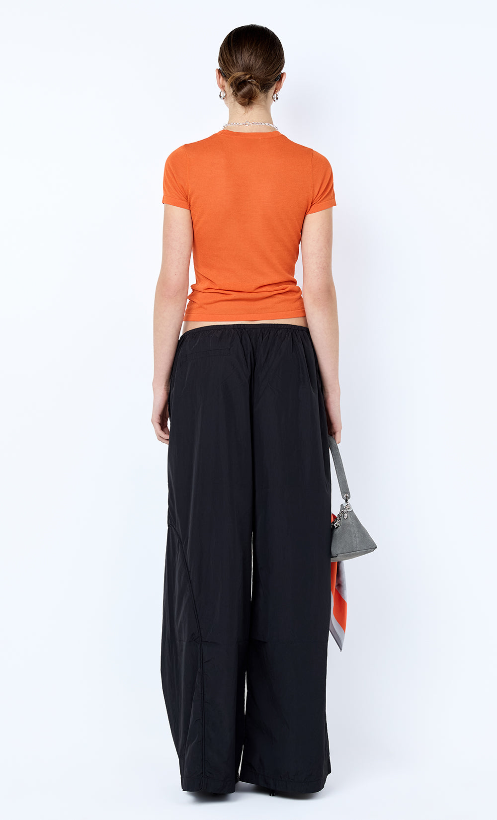 Melrose Baby Tee in Persimmon. A sheer knit baby tee designed with a soft and easy silhouette.