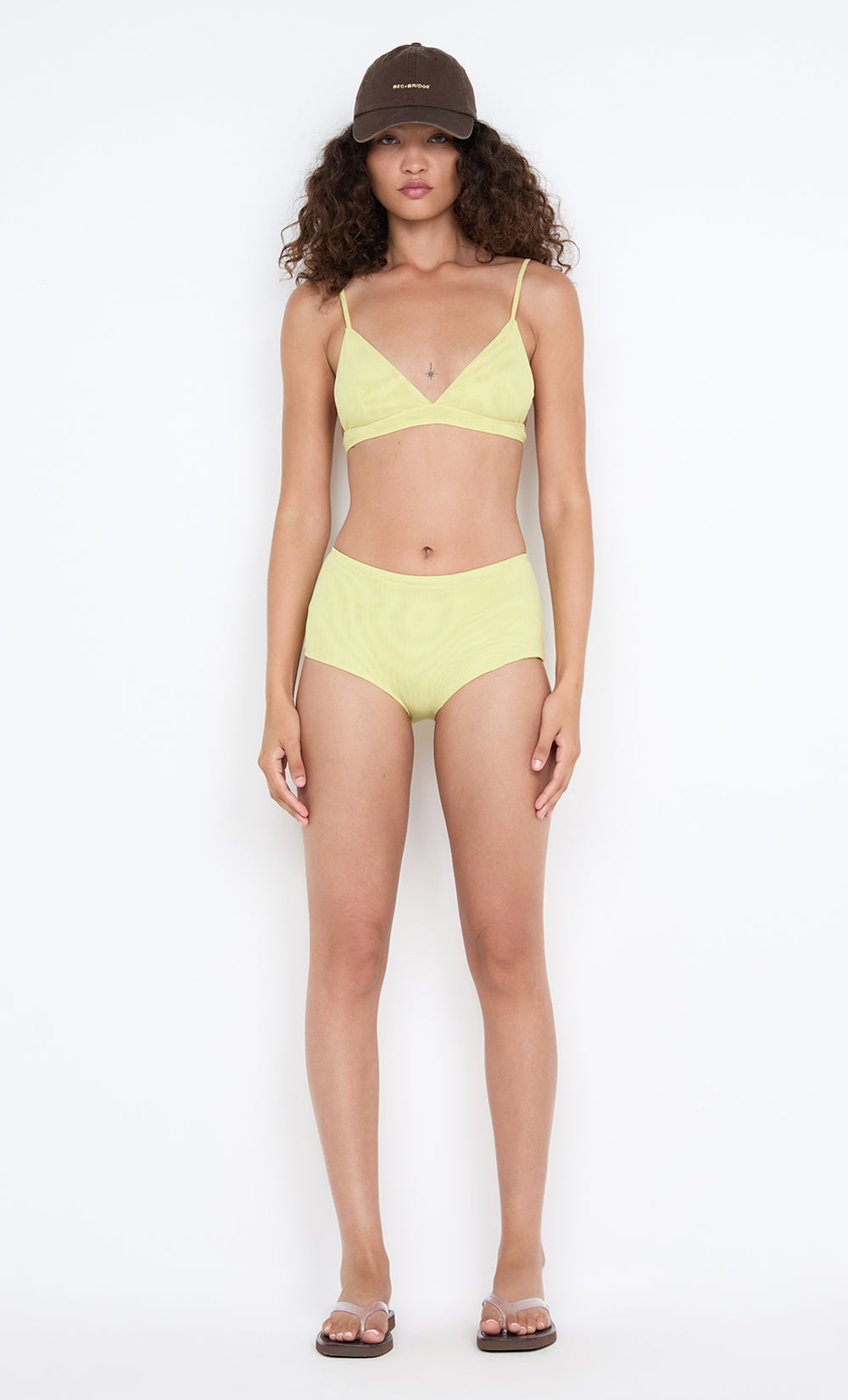 Moda Bra in Citrus. This versatile triangle bra, crafted from stretch fabrication, features adjustable straps and a bra clasp at the back for a perfect fit, making it a great layering piece for resort styling.