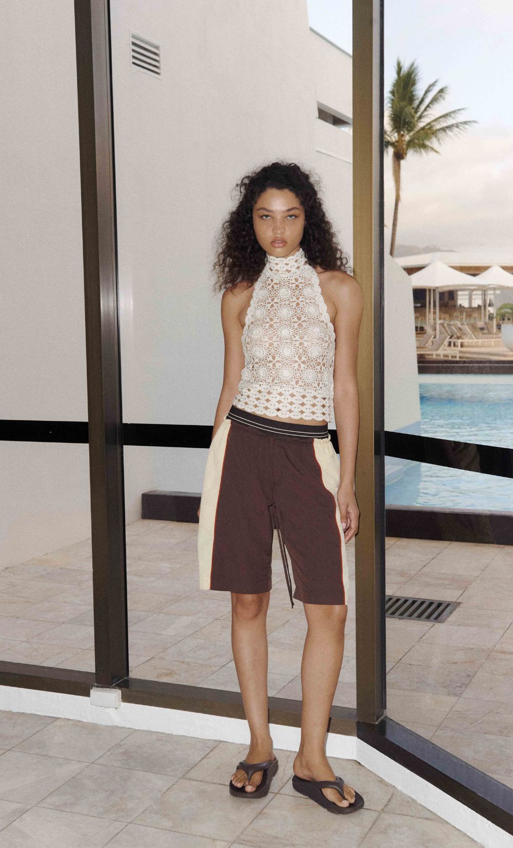 Jerri Long Short in Chocolate/Buttercream. These relaxed striped long shorts are chic and comfortable, becoming the perfect summer staple to elevate your wardrobe.