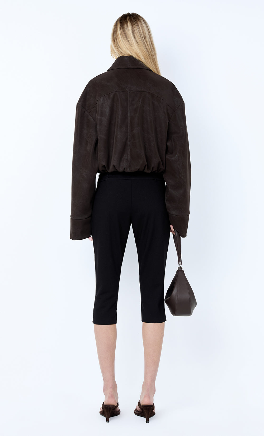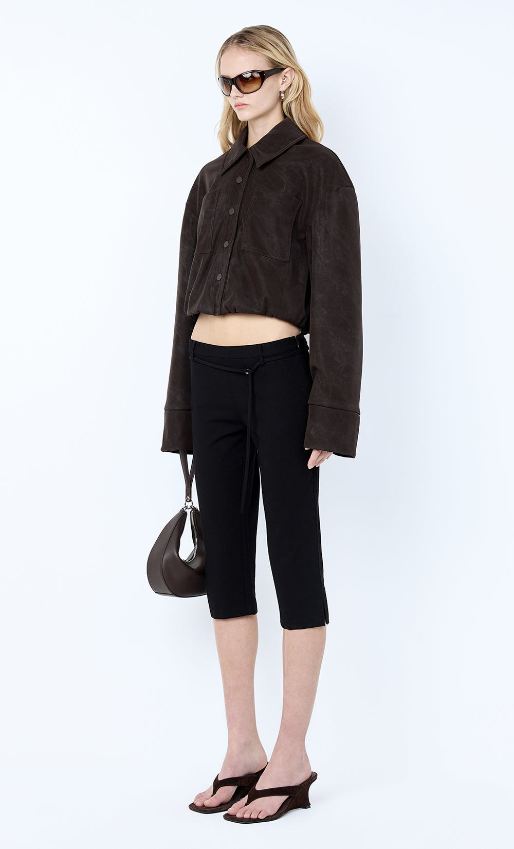 Alaric Cropped Jacket in Espresso. A bold, cropped brown jacket perfect for layering in edgy daywear or evening styling.