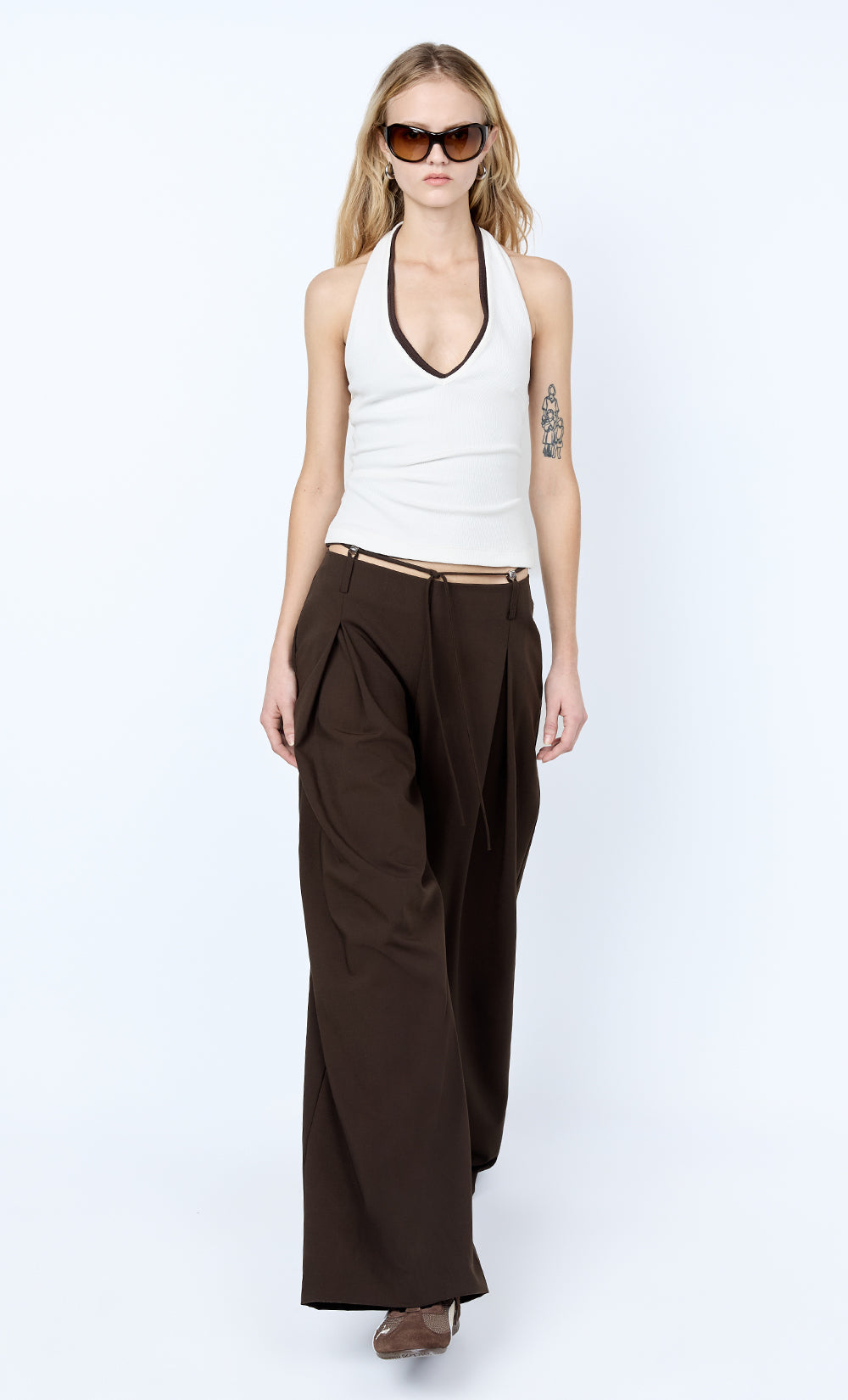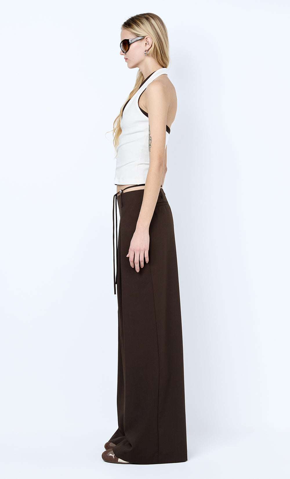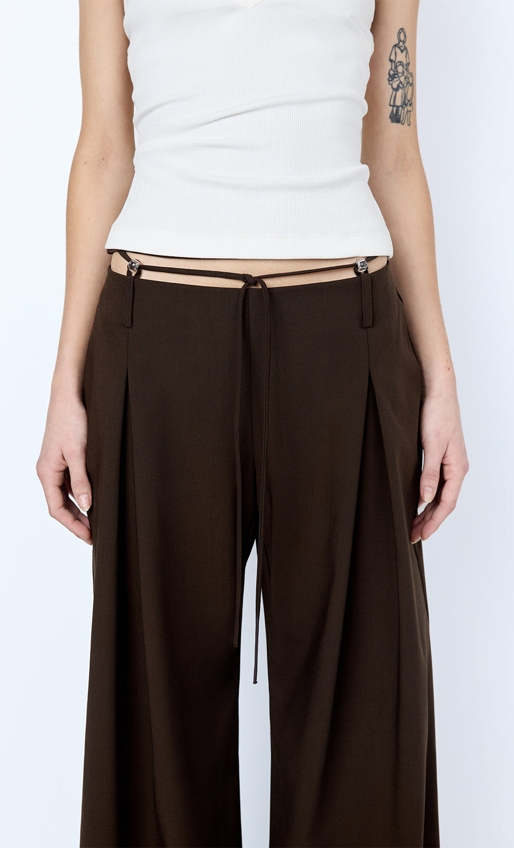 Albi Beaded Pant in Espresso. A refined brown suiting pant perfect for elevated daywear or evening styling.