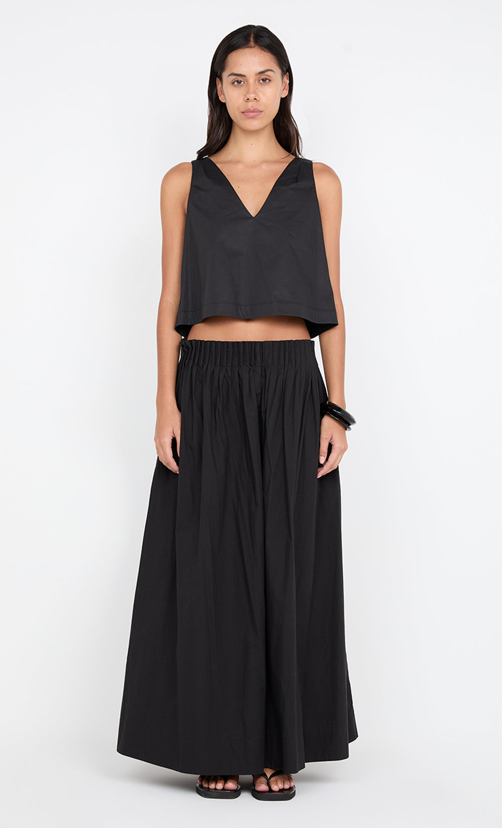 The BEC + BRIDGE Aluca V Neck top in Black is a versatile and stylish piece made from soft cotton poplin. Featuring a flattering V-neckline, this top is reversible, allowing you to wear it as a straight boat neckline for two chic looks in one. The relaxed fit offers comfort and ease, while the hem finishes at the waist with a wide hem for a polished finish. Easy to style, the Aluca V-Neck Top is accessed via pull-on styling and is perfect for both casual and dressed-up occasions.