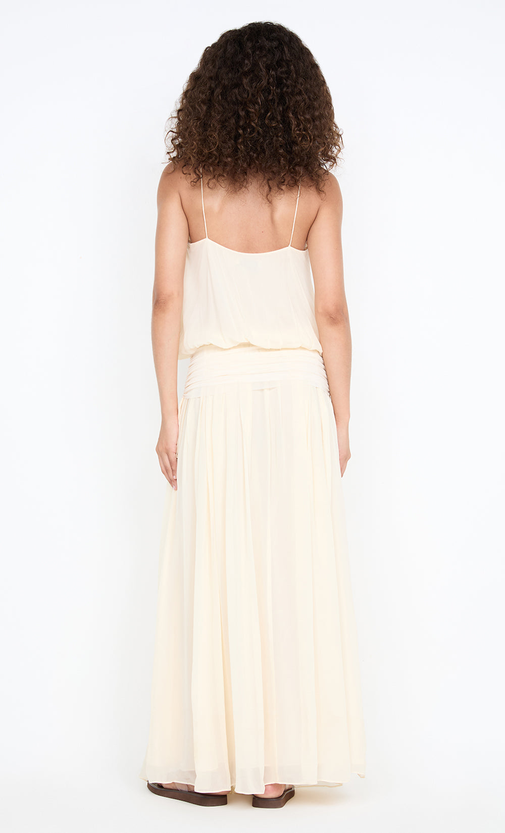 Flows into a gathered maxi dress