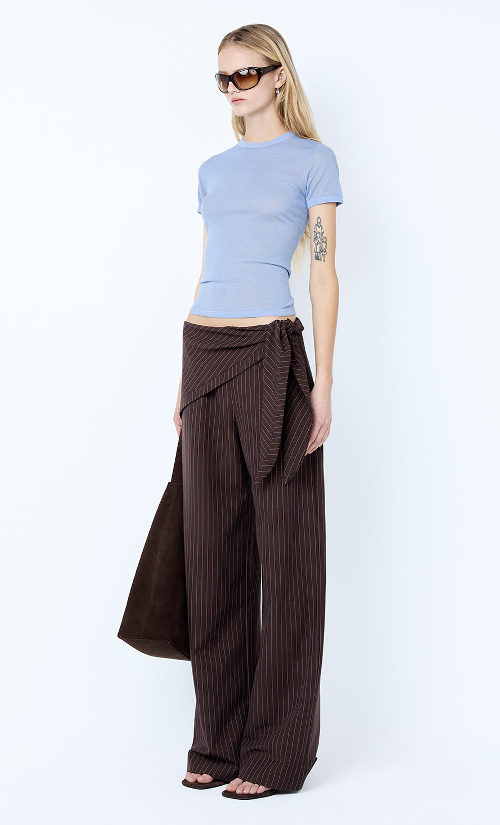Melrose Baby Tee in Chambray Blue. A sheer knit baby tee designed with a soft and easy silhouette.