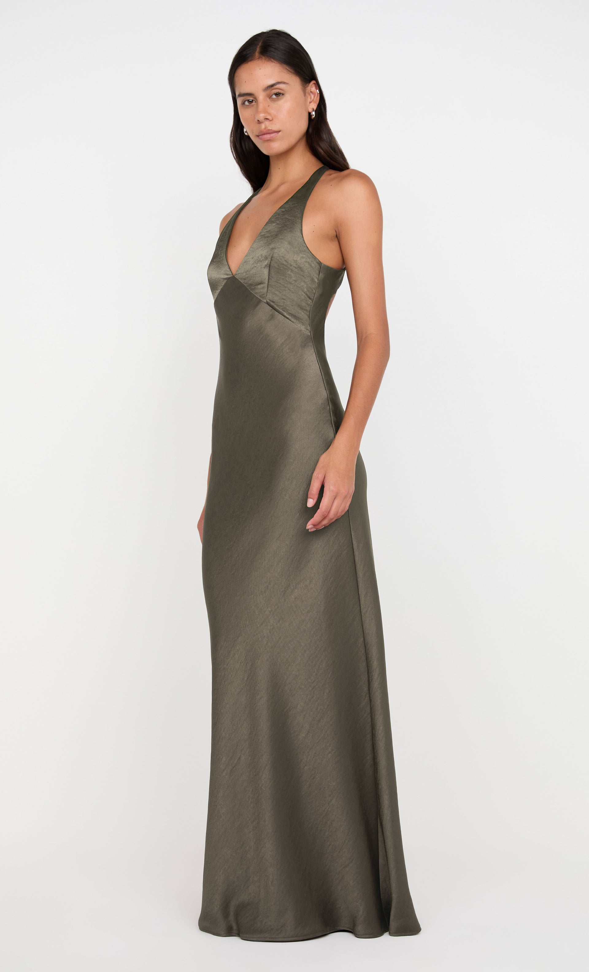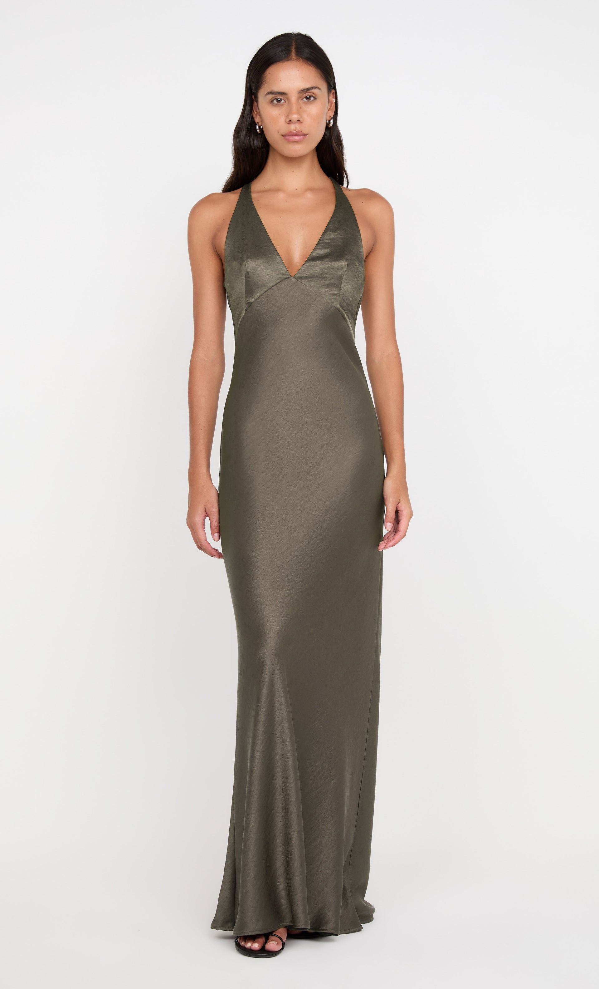 The Dreamer V Neck Dress in Dark Willow. An effortless maxi dress, perfect for bridesmaids and special occasions.